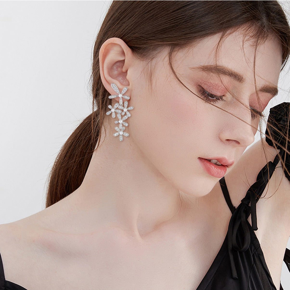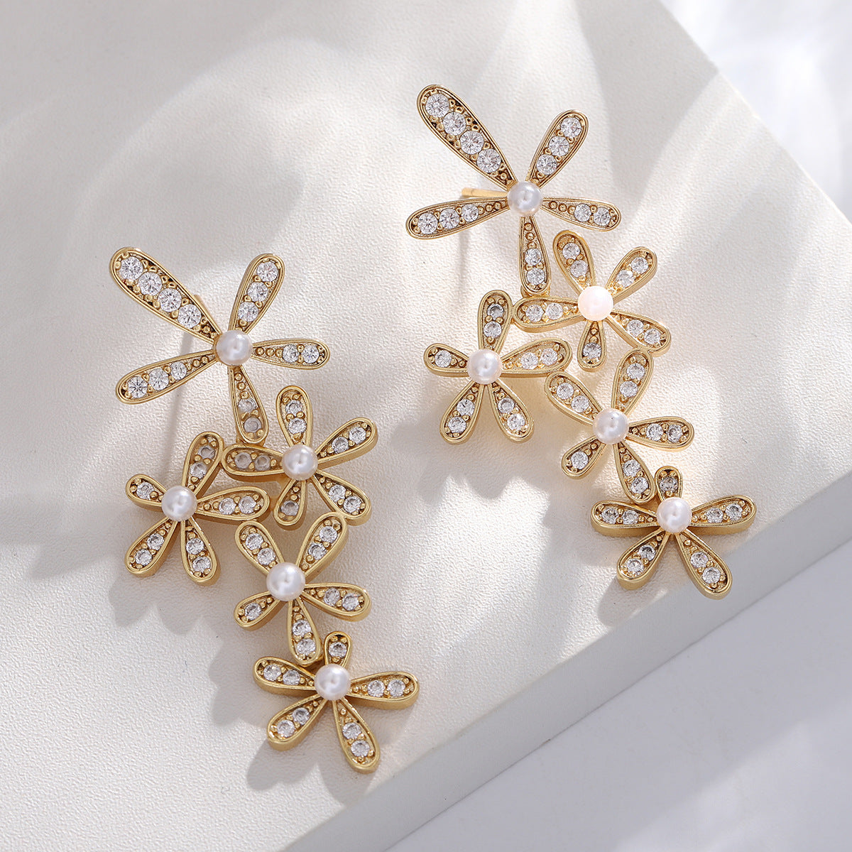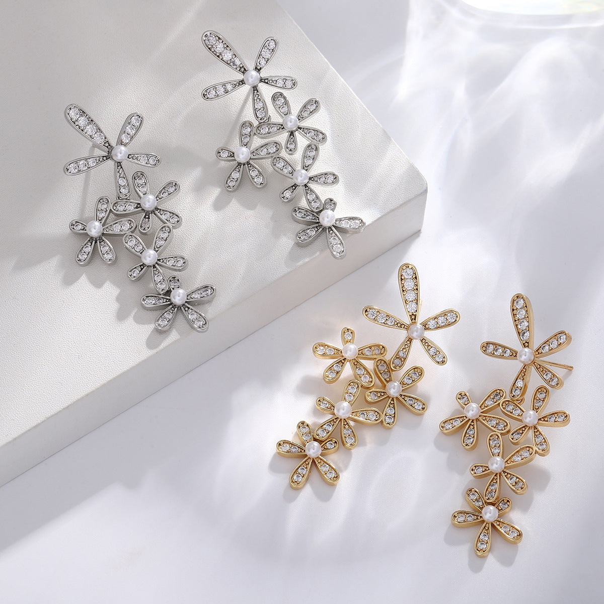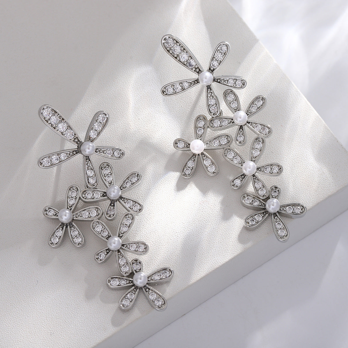 Elegant Pearl Earrings for Women – Zirconia Five-Leaf Clover Dangle Earrings with a Chic, Unique, and Luxurious Style